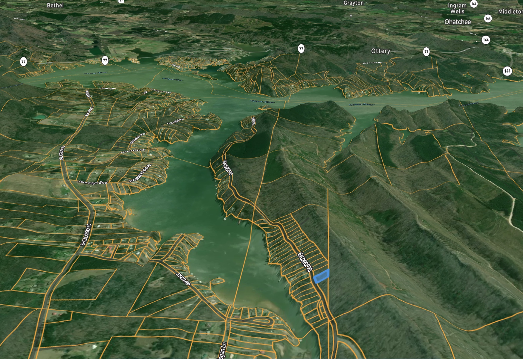 This is truly a mountain view property. It's grade is not as steep as mountain properties in general, but it does have some grade. From the road it's about 6 feet high, but once you get onto the property and walk up to the center you can get some nice views of the water. We've seen the lot and spoken with a land developer who gave us an estimate of 6k to 7k for carving a sweeping pathway up to the center of the lot and clearing an area for a small cabin, tiny home, mobile home or RV.